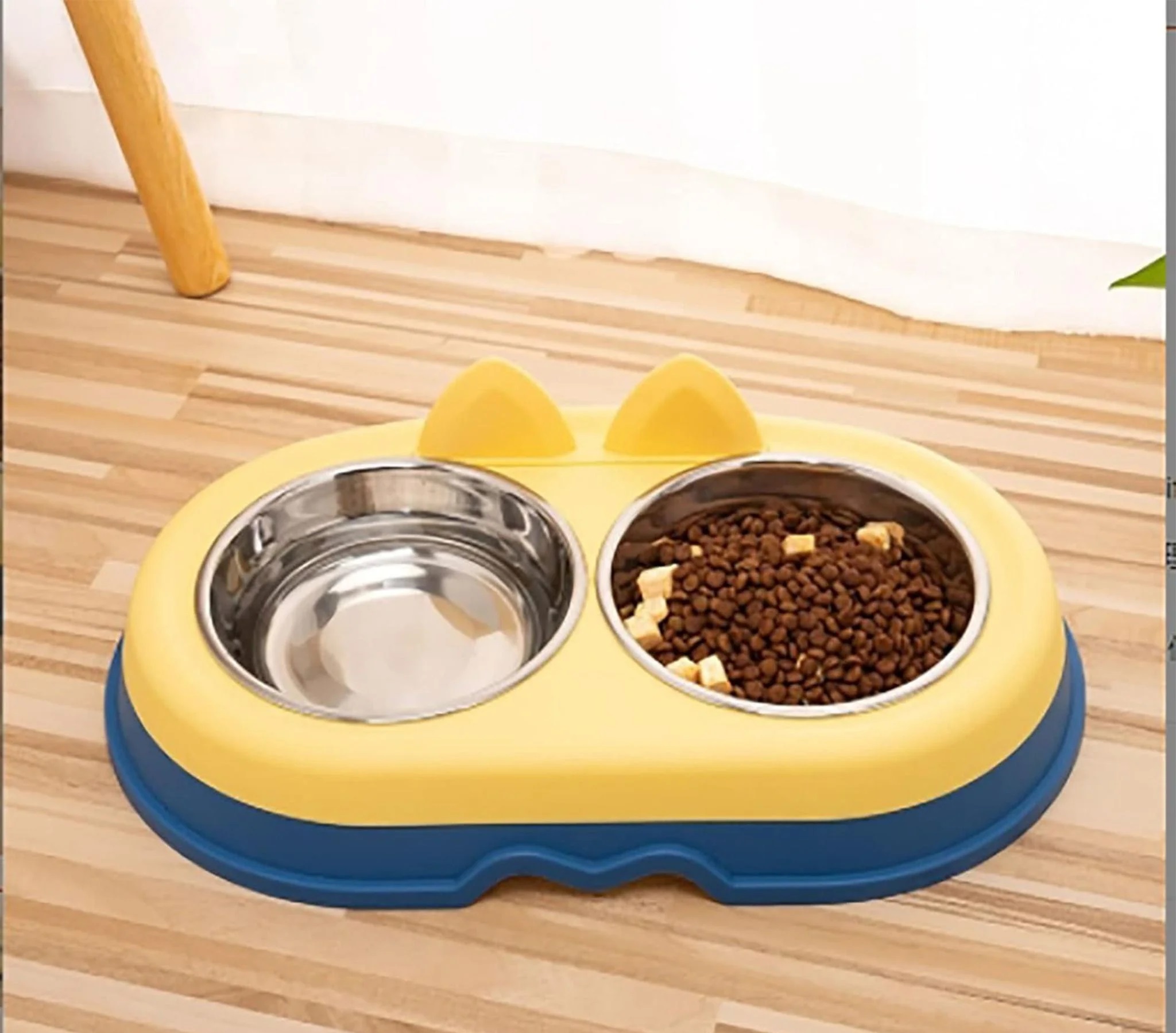 - Thiết kế đôi: Bao gồm hai bát riêng biệt được đặt cạnh nhau trên cùng một khay hoặc đế. Thiết kế này thường được sử dụng để đựng đồng thời thức ăn và nước uống cho thú cưng.